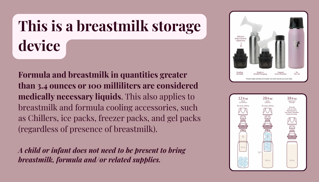 1. TSA might ask you to dump your ice while they test your milk, but you can refill the ice anywhere once you're through.